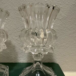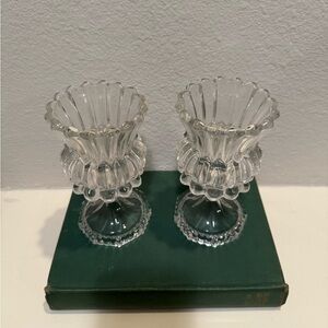 Vintage Pair of Crystal Tulip Candlestick Holders