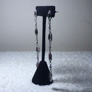 Vintage Pair of Drop Iridescent Rhinestone Earrings in Silvertone