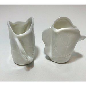 Vintage Pair of Fitz & Floyd White Flower Pedal Candlesticks Holder 2.5" H