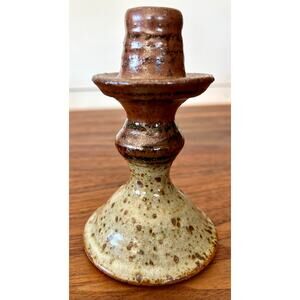 Vintage Pair of Handmade Stoneware Glazed Candlestick Holders Signed Hanson