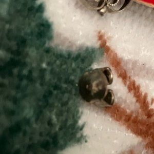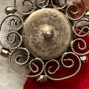 Very cute and unique pair of stud earrings .Petit Point Hand Embroidered Earrings with original backs . Bought at an antique sale some years ago . Very empressive design . No visible maker mark