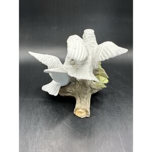Vintage Pair of Porcelain White Doves With White Flowers Figurine Sculpture MINT