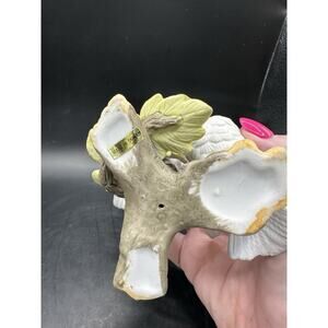 This vintage pair of porcelain white doves with white flowers figurine sculpture is a beautiful and elegant addition to any room. Hand painted with a matte finish, these medium-sized figurines capture a traditional and romantic theme, perfect for all occasions. Made in Taiwan in the late 20th century, these sculptural pieces feature a 3D effect and are crafted from porcelain material. With its charming design and intricate details, this collectible set of white doves is sure to delight collectors and individuals looking to enhance their decor with a touch of sweetness and nostalgia. They measure 4" tall, 5" in length and 3.5" wide and weigh 7 ounces. It is in excellent condition with no chips or damage.