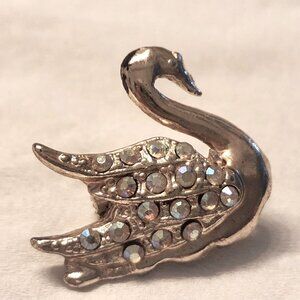 Vintage Pair of Silver-tone and Rhinestone Swan Pins-Circa 40s-50s-Good Cond.
