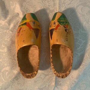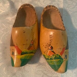 This is a pair of vintage Dutch Wooden Clogs / Shoes made in Holland. These little wooden shoes have small hooks on the back to hang up if desired. They measure approx. 8" in length. I had these shoes hanging on the wall in my daughter's room when she was a child. They are adorable to put on display.