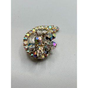 Tags: vintage brooch, paisley brooch, AB beads, Smokey grey, smokey rhinestones, crescent brooch, Gold tone setting, fashion brooch, costume jewelry, vintage jewelry, leaf brooch, very shiny, Aurora Borealis, prong set