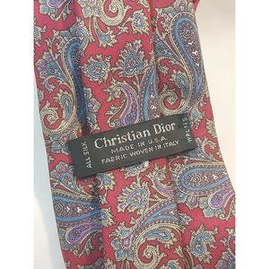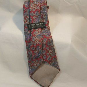 Vintage Paisley CHRISTIAN DIOR CRAVATE Neck Tie 100% Silk Red Blue