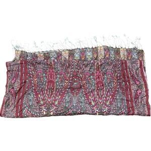 Vintage Paisley Fringe Scarf Red Gray Boho Chic Lightweight Wrap Shawl