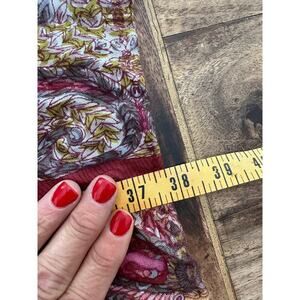 Vintage Paisley Fringe Scarf Red Gray Boho Chic Lightweight Wrap Shawl