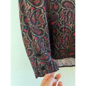 Vintage Paisley Print Blouse. Portrait by Northern Lights, size 10. Thick knit blouse with button cuffs and keyhole back. Shoulder pads.