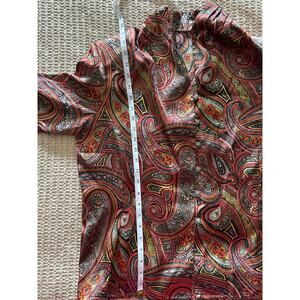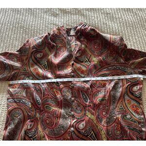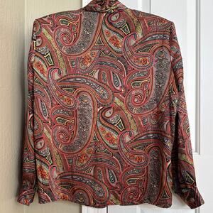 Vintage Paisley Print Button Up Blouse Women's Long Sleeve Silk Blend Top