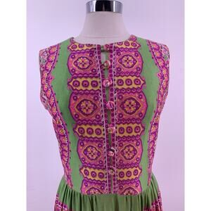 Paisley Print Maxi Dress Pink Purple Green Glitter Boho 60s 70s Slim Aarons Size M