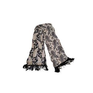 This elegant scarf features a classic paisley design in black and white. Its soft, lightweight material adds a touch of sophistication to any outfit.