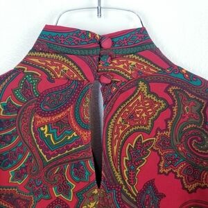 Pleat detail and buttons at wrist. Buttons and keyhole closure in back. A flaw on the top of the right shoulder is shown in the last picture.