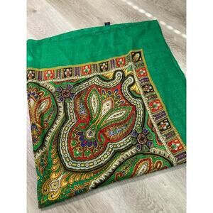 Vintage Paisley Wool Scarf Green Gold Thread Women's Fall