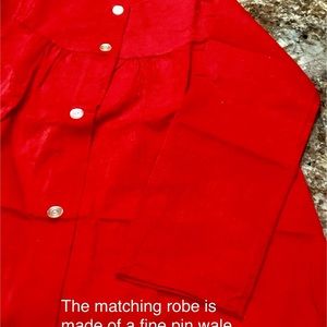 The robe and pajamas are100% cotton material and meticulous sewn inside and out.