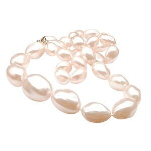 Vintage Pale Pink Baroque Faux Pearl Necklace on Graduated Strand