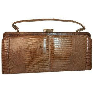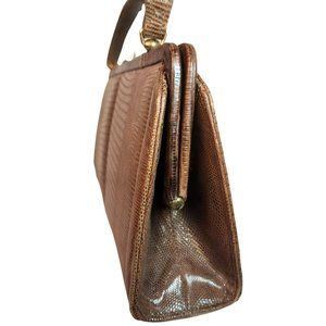 Vintage Palizzio Tegu Lizard Brown Rectangle Frame Closure 1960s Handbag
