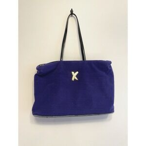 Vintage Paloma Picasso Fabric Tote Bag/Purse/Handbag. Purple Felt fabric material. Zipper closure. Inner pockets. Goldtone logo. Large size, see photos for measurements. Bottom has wear and is peeling. Rub wear on fabric. Used/preowned.