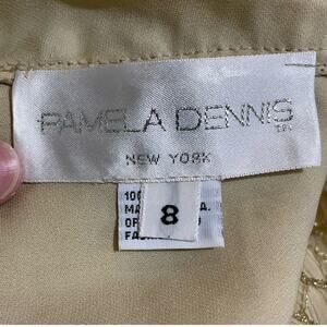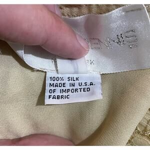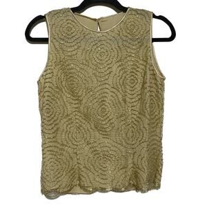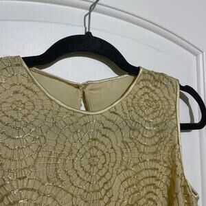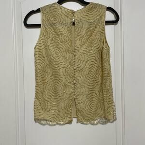 Vintage Pamela Dennis 100% Silk Yellow Gold Lace Tank Top Button Back 8 Metalic