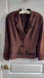 The jacket has been gently worn only a handful of times and is in good condition. The only flaws I could find are one loose thread of beads on one of the front pockets, some tearing on the inner lining that you don’t see and a faint spot on both the upper shoulder and left label that may very well come out if dry cleaned. The two faint spots are truly faint, I feel, but you can see them quickly in the video. Also, please see the last four pics for these flaws. Sadly, the beautiful brown color is sometimes hard to catch in pics due to the way it captures the light and gets washed out looking. It is from a smoke-free home.
