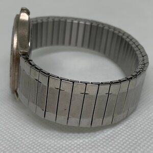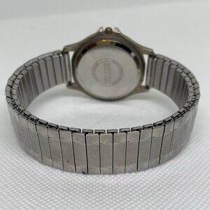 Vintage Pampered Chef Europa Quartz Watch Silver tone quartz Analog 35mm round case gray dial stretch band size 7.5”, in good condition battery installed