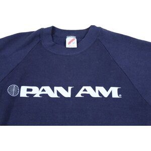 Vintage Pan Am Airline Mens Pullover Crew Neck Sweatshirt 50/50 RARE Vtg Short Sleeve jumper Thin Soft S/M tagged Large 1980's vintage sizing is not todays standard please see measurements. Great vintage pre owned condition, ready to wear. Great store prop too. Measures 20" chest and 22" length.Fast professional shipping. 51 9/30/2025