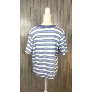 Vintage Pan-Z Men's Blue White Striped Short Sleeve Button-Up Shirt Size Medium