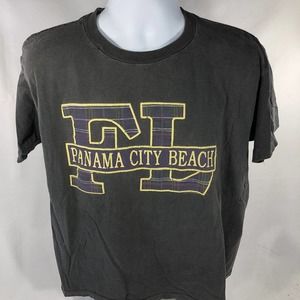 Vintage Panama City Beach Florida Single Stitch Size Medium Plaid Logo 90s 80s.