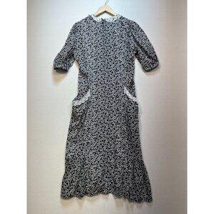 Embrace the charm of timeless fashion with this vintage dress by Panama Jill. The elegant lace collar and practical pockets add sophistication and utility, while the classic black and white floral pattern offers versatility. Perfect for those who appreciate classic elegance in their wardrobe.