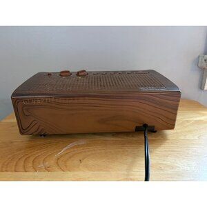 This retro Panasonic alarm clock radio features a wood grain design, AM/FM bands, and a snooze function for a touch of nostalgia to your mornings.