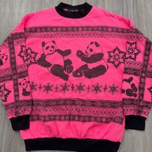 Vintage Panda Bear Sweatshirt Women's Medium Pink Geometric Animals 90s USA