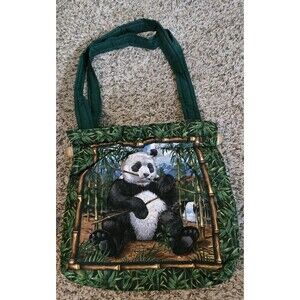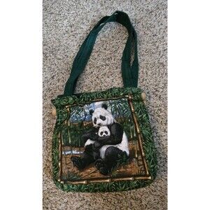 Vintage Panda Bears Handbag Wallet Set Of 2 Bamboo Leaves Green Cute Purse Tote