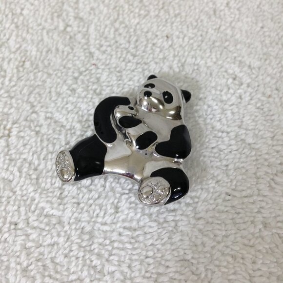 Vintage Panda with Baby Metal Pin Brooch Marked “W”