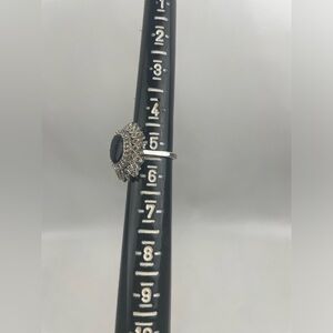 Vintage Panetta Sterling Rhinestone and Glass Onyx Ring Sz 5-1/2