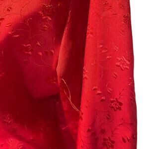 Vintage Panhandle Slim Red Satin Embroidered Floral Ruffle Shirt Womens Sz Large