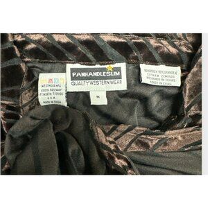 Vintage Panhandle Slim Womens M Brown Burnout Velvet Blouse Buttons Western Boho