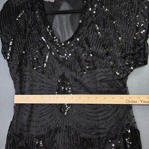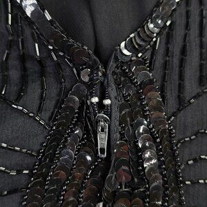 Vintage Pantagi's Dress Womens Medium Black Silk Sequin Beaded Evening Art Deco 80s India
