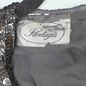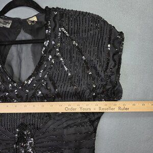 Vintage Pantagis Dress Womens Medium Black Silk Sequin Beaded Art Deco 80s Glam