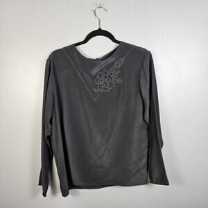 Vintage Panther 100% Silk Long Sleeve Blouse Flower Detail Round Neck Button