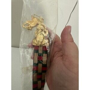 This vintage Papagallo ribbon belt features gold frog buckles, adding a playful and unique touch to any outfit. Made in the 1980s, the belt showcases a mix of fabric, metal, and leather materials in a whimsical art deco style. Designed specifically for women, this medium-sized accessory is perfect for adding a touch of vintage flair to any ensemble.