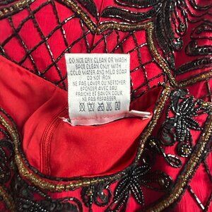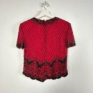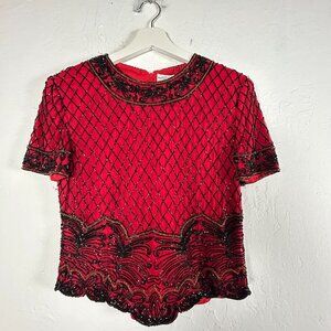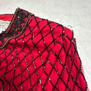 Vintage Papell Boutique Evening Womens Red & Black Short Sleeve Beaded Top Small