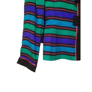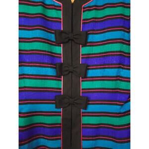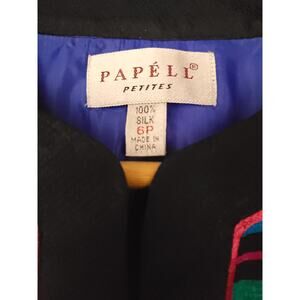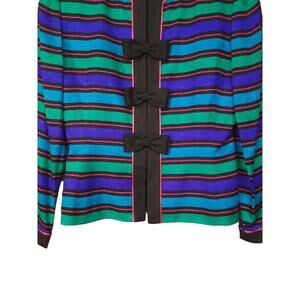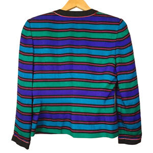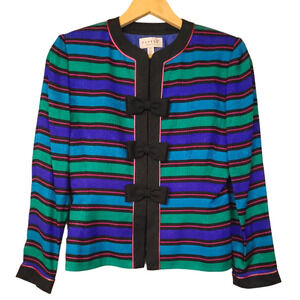 Vintage Papell Petites Womens Silk Snap Button Blazer 6P Striped Career Jacket