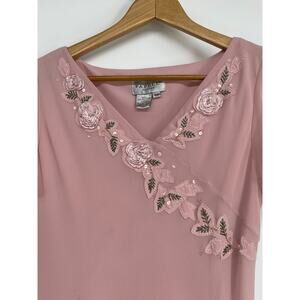 Vintage Papell Pink Beaded Asymmetrical Midi Dress Size 10P Fairy Formal Y2K