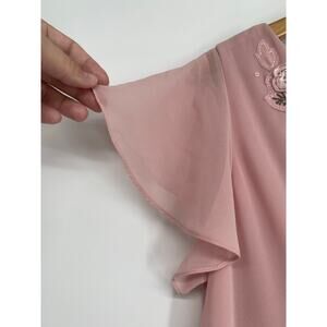 Vintage Papell Pink Beaded Chiffon Asymmetrical Midi Dress Size 10P Fairy Formal Wedding Y2K. Measurements are approximate.
