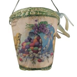 Vintage Paper Mache Easter Basket Pail "A Happy Easter"