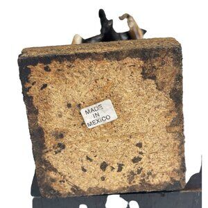 Vintage Paper Mache Old Lady Carrying a Pig Statue Figurine Wood Base 6.5 in H