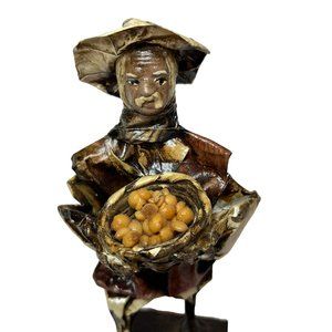 Vintage Paper Mache South America Folk Art Man with Bowl of Coffee Beans