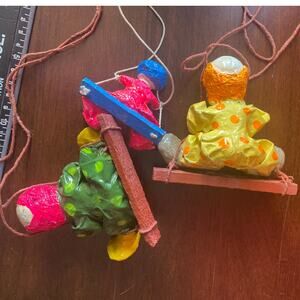 Vintage Paper Mache Swinging Hanging Clown Dolls Circus 3 Mexican Folk Art Fair
