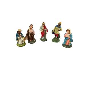 Vintage Paper Machete Nativity Scene Figures Set of 5!